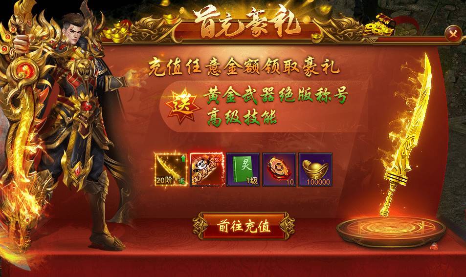 一、新服开服首充,豪华大礼,首充即送