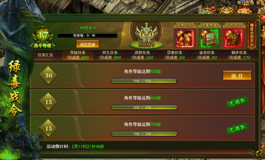 升星可以提升绿毒装备的属性,每阶装备有10星,升满10星后自动进阶为下一阶装备