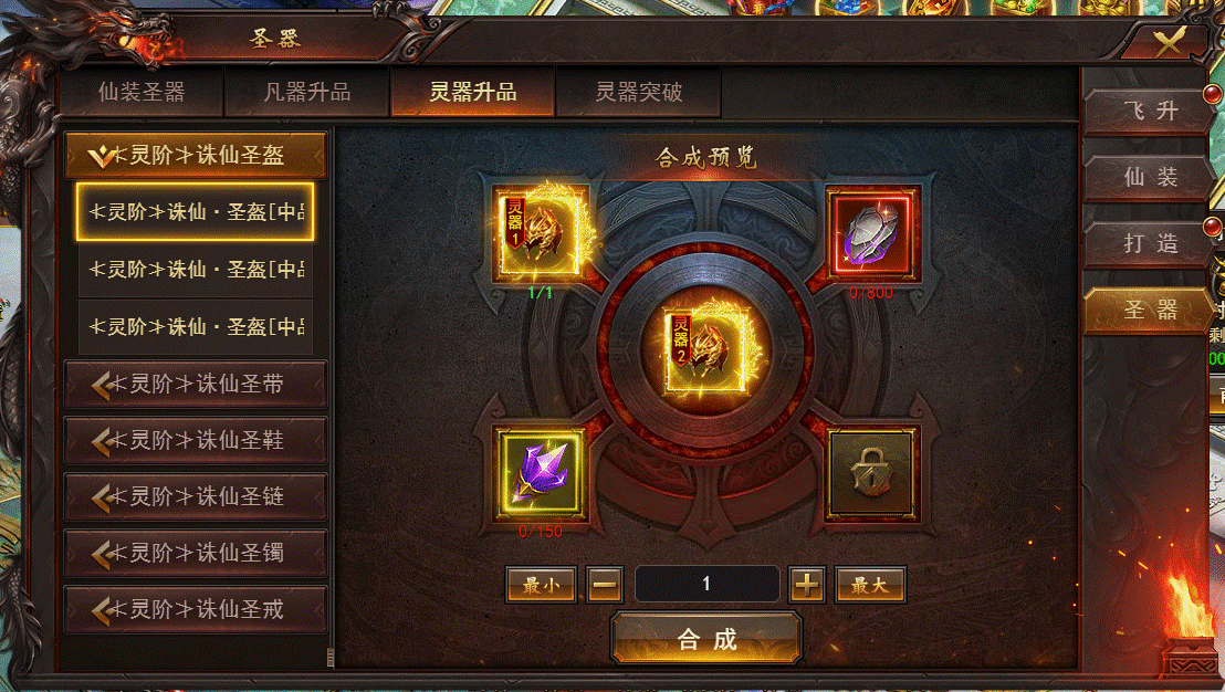 诛仙圣器可与仙装融合,极大提升仙装的属性。