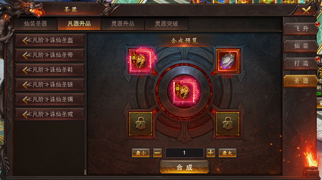 2、单条飞升属性装备可和任意其他单飞升属性装备合成2条飞升属性